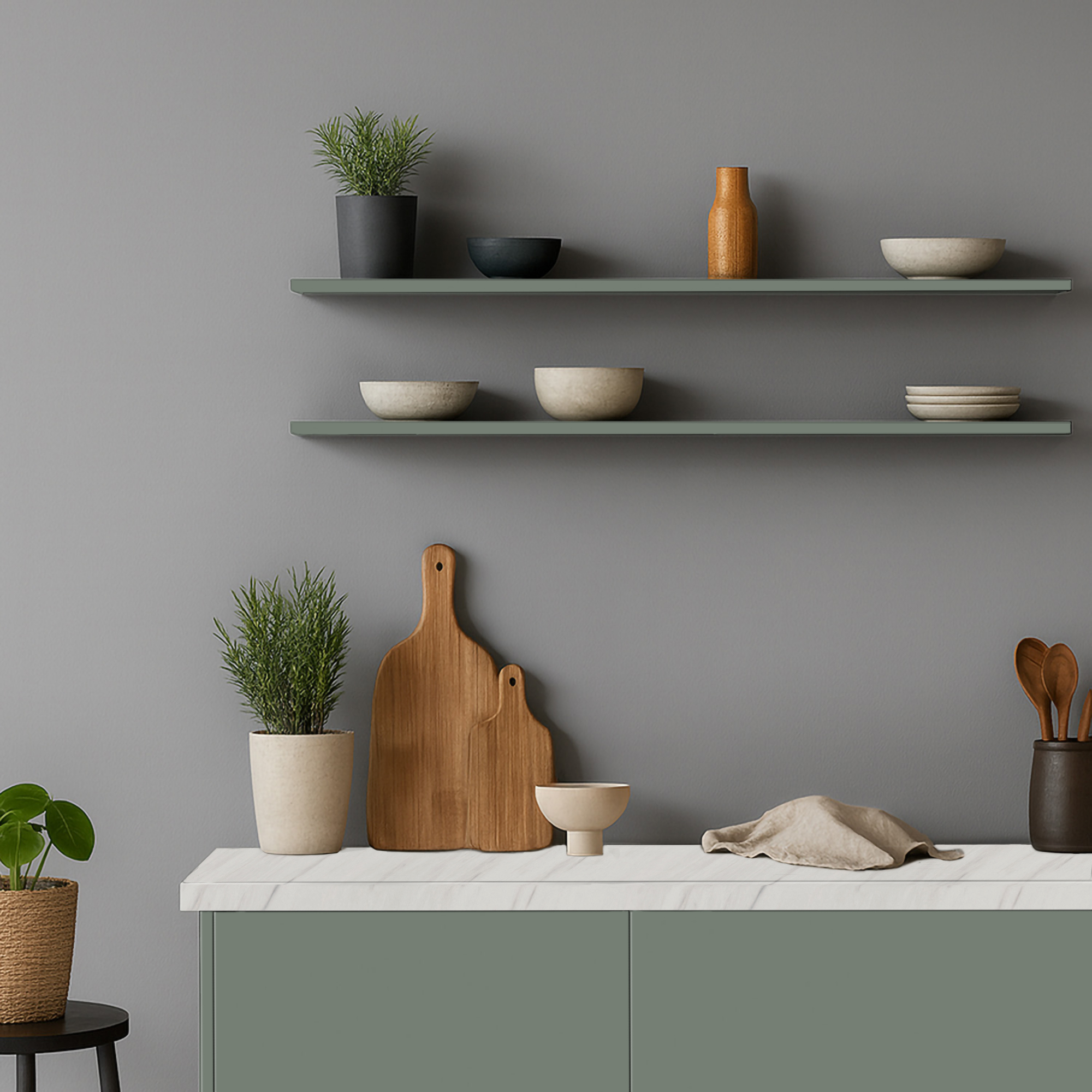 Eucalyptus Groen is geliefd bij interieurbouwers, meubelmakers en particulieren die een zachte, natuurlijke tint willen toevoegen. Met de 18 mm U604 ST9 plank creëert u een stijlvol en strak zwevend wandmeubel.