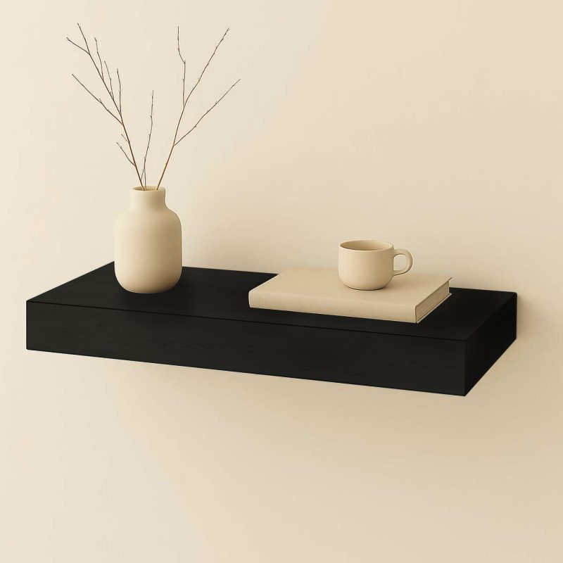 38mm Dikke zwevende wandplank op maat Zwart Eiken (U998 ST38 | RAL9005)